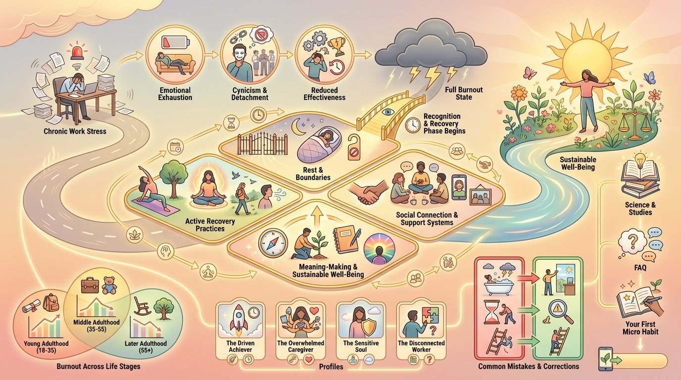 La gestión del burnout es el enfoque sistemático para reconocer, recuperarse y prevenir el agotamiento que surge del estrés prolongado y las demandas laborales abrumadoras. En lugar de aceptar el burnout como inevitable, la investigación moderna muestra que las prácticas de recuperación intencionales, los cambios organizacionales y las estrategias de resiliencia personal pueden ayudarte a recuperar tu energía y reavivar tu pasión. Esta guía completa explora técnicas basadas en evidencia para gestionar el burnout en cada etapa: desde los primeros síntomas de alerta hasta la recuperación total, para que puedas construir un bienestar sostenible a pesar de las exigencias de la vida.