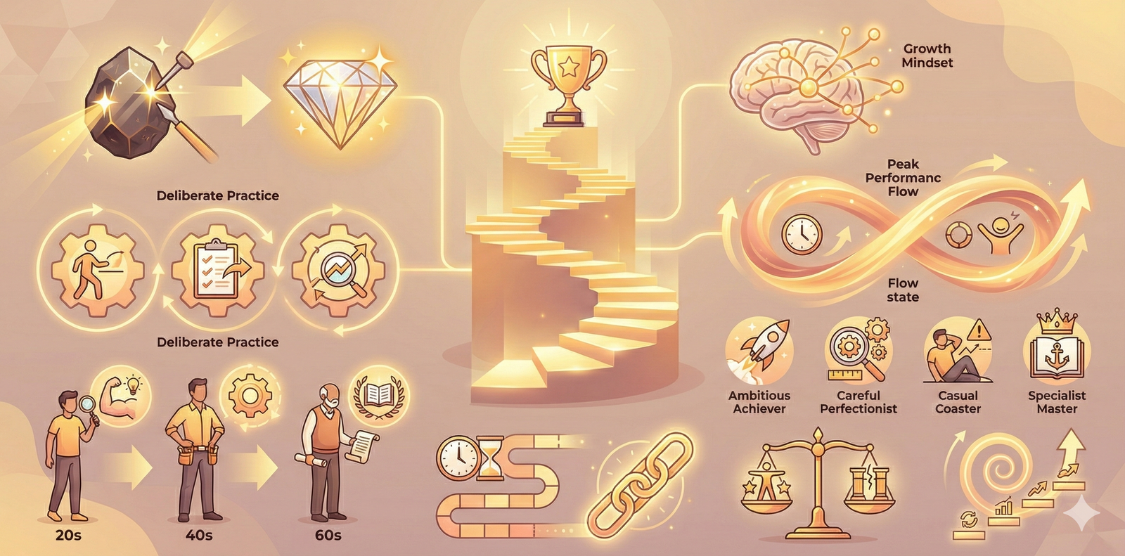 How deliberate practice, growth mindset, and meaningful commitment combine to create excellence over time.