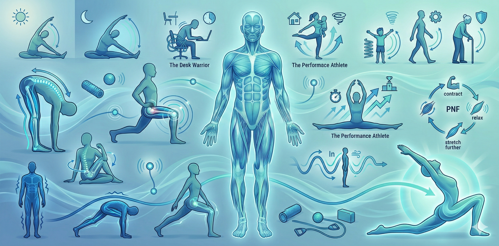Best move: Combine dynamic pre-workout stretching with 2-3 dedicated flexibility sessions weekly using static and PNF techniques