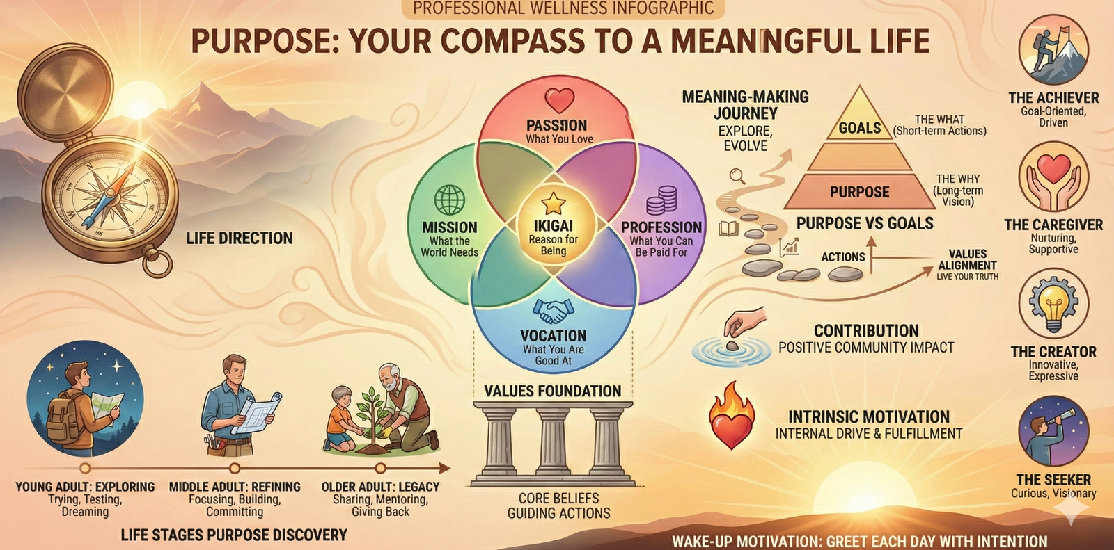 Middle adulthood is paradoxically both the most crisis-prone and potentially most powerful time for propósito. By mid-life, many people have invested decades in a particular path—a career, a relationship structure, a lifestyle—and suddenly find themselves questioning whether it's actually meaningful. This is often when the profound realization hits: "I've succeeded at achieving what I was supposed to do, but I don't feel fulfilled. I have financial security and status, but I feel empty." This is not weakness or ingratitude; it's the soul's cry for alignment. Simultaneously, middle adulthood offers remarkable advantages: you have real experience and self-knowledge from years of living, genuine clarity about what you actually value (as opposed to what you thought you should value), and critically, enough time remaining to make meaningful changes. propósito deepens dramatically during this stage, shifting from the young adult question "What do I want to do?" to the more profound "What impact do I want to make? How do I want to be remembered? What truly matters?" Many people pursue greater propósito alignment by courageously changing careers (often with financial stability to cushion the transition), Profundizando relationships that matter, or stepping into community leadership and mentoring roles. The midlife reassessment, while uncomfortable and sometimes disorienting, frequently leads to greater authenticity, fulfillment, and a life that actually reflects your values. Additionally, children often become independent during this stage, which paradoxically frees significant emotional and práctico capacity for renewed propósito beyond parenting. This can be a gateway to previously delayed dreams and contributions.