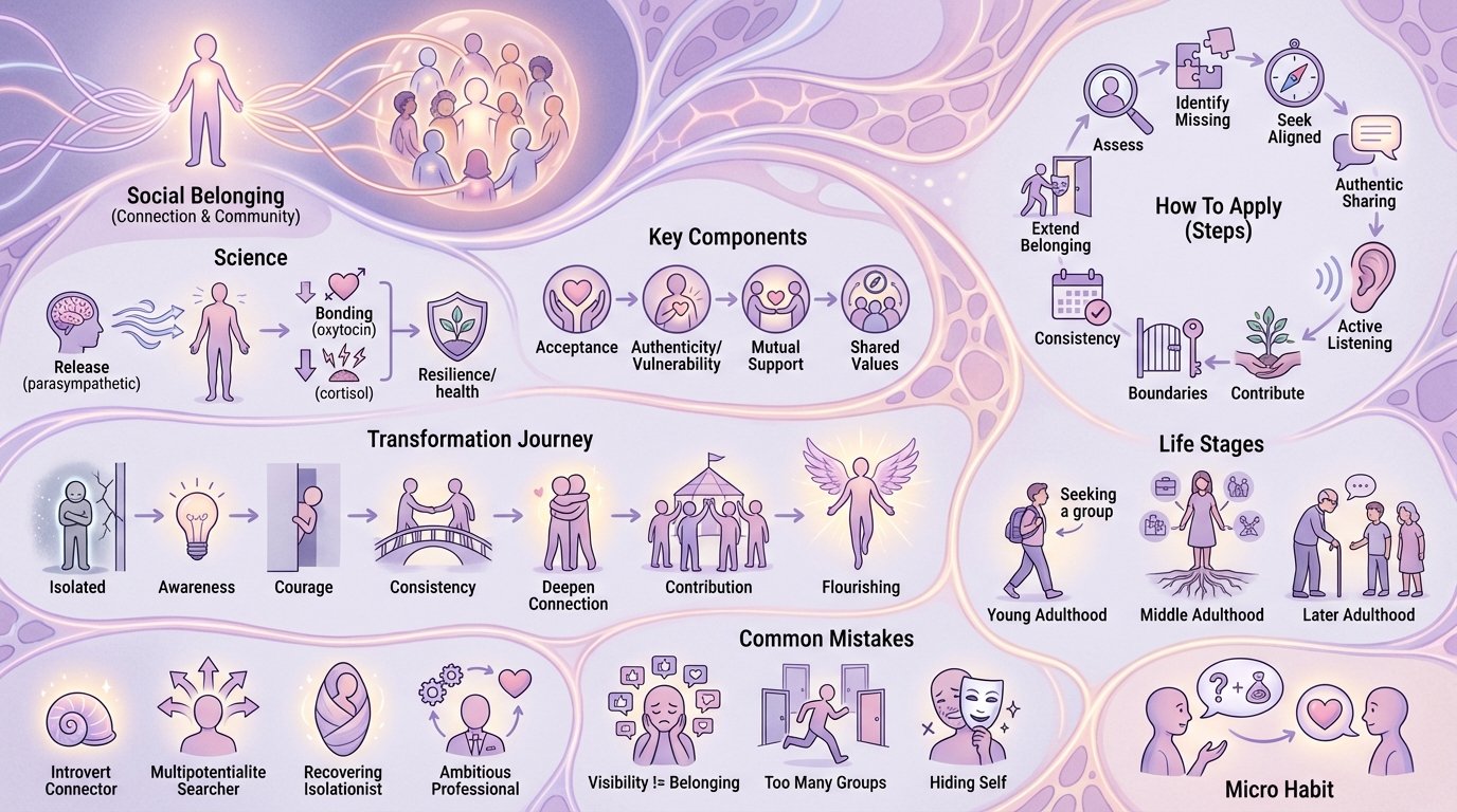 Most personas never fully develop social-belonging, which es Por qué they sentir stuck even when other areas son working. You podría ser achieving externally while struggling internally because social-belonging es missing. The bueno news? Unlike talent or IQ, social-belonging es completely developable through deliberate Práctica. In this guide, we'll show you exactly Cómo build social-belonging step-by-step, Por qué it matters, and how it transforms other areas of Tu vida.