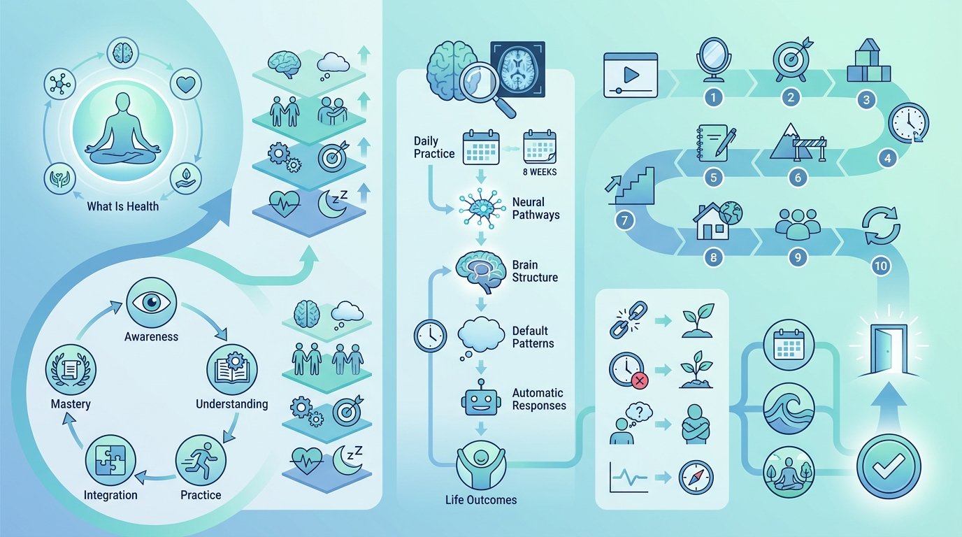 Neuroscience research has revealed that regular health practice actually changes brain structure and function. Studies using fMRI imaging show increased gray matter in regions associated with emotional regulation, self-awareness, and cognitive flexibility.
