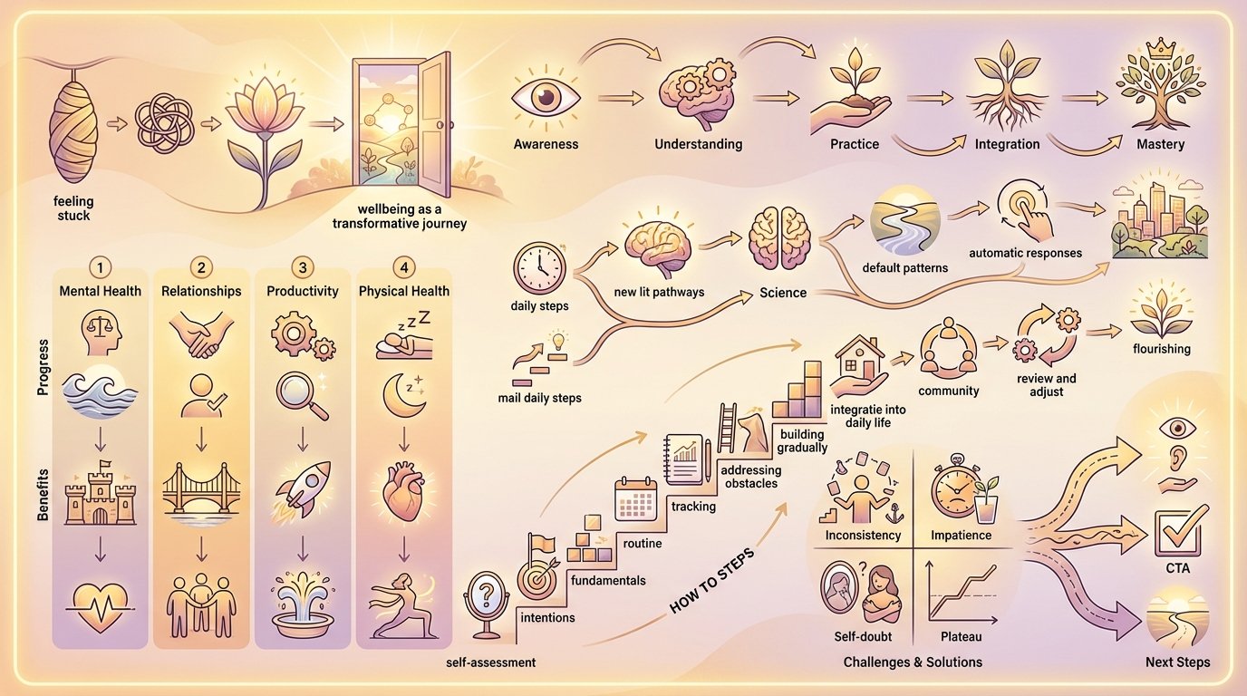The concept has roots in both ancient wisdom traditions and modern psychological research. Today, evidence-based approaches to wellbeing draw from cognitive behavioral science, positive psychology, and neuroscience to create practical frameworks anyone can use.