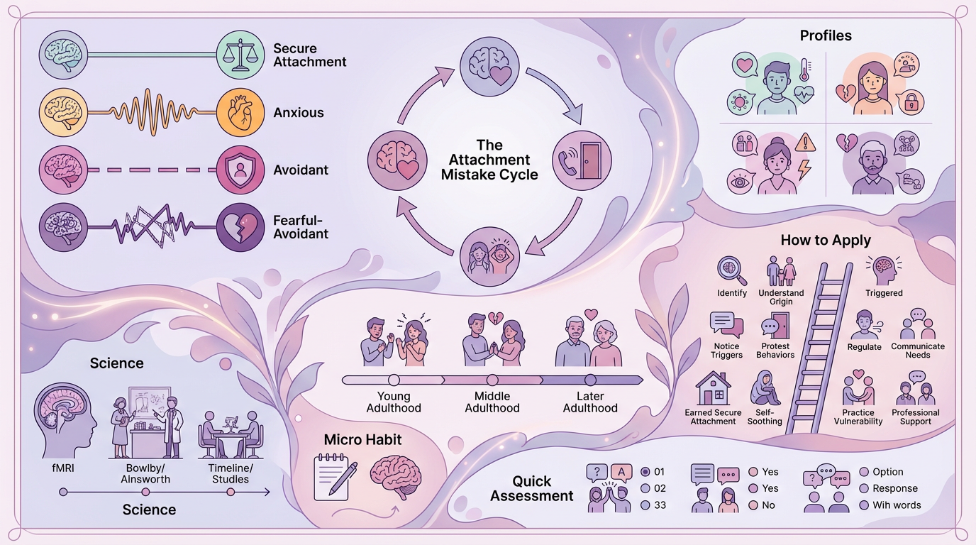 The first common mistake is assuming your attachment style is permanent or destiny. Insecure attachment patterns feel natural because they're familiar—they've been your survival strategy since childhood. But neuroscience proves that attachment can shift with conscious effort and a different relational experience. Many people resign themselves to 'I'm just anxious' or 'I'm not good at relationships' and stop trying. This is precisely backward: awareness that your patterns are learned is liberating because learned patterns can be relearned.