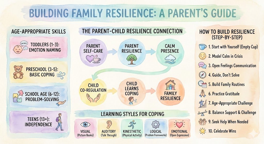 This guide addresses the unique challenge parents face: building their own resilience while modeling it for their children. You will learn why your coping matters more than what you teach, and how to build a family culture of healthy adversity management.