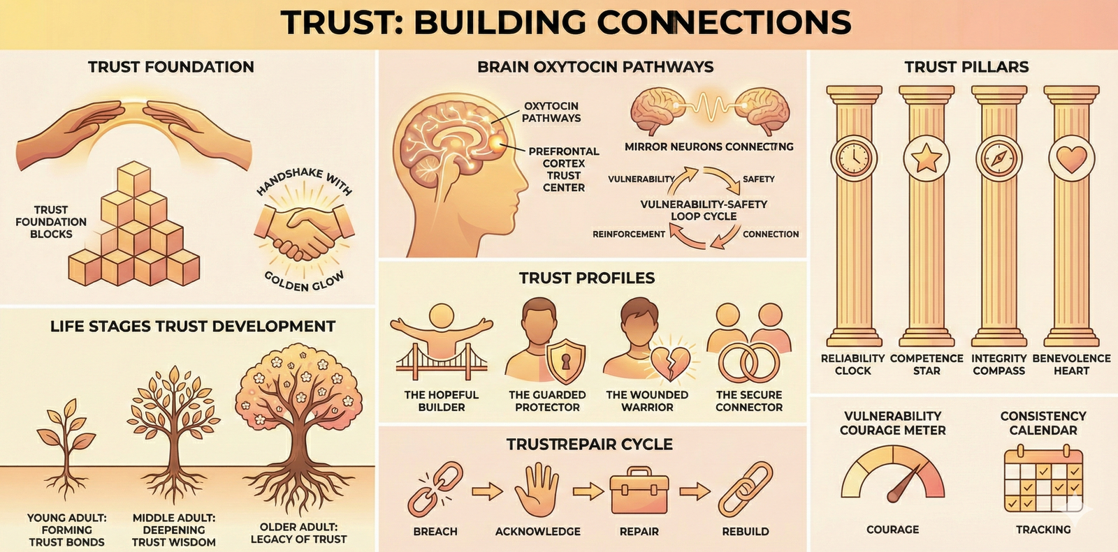 Trust is the invisible foundation that holds relationships together, yet it's often taken for granted until it breaks. Whether you're building trust with a romantic partner, family member, or close friend, the journey requires vulnerability, consistency, and emotional courage. Research shows that couples who report higher trust levels experience greater relationship satisfaction, better communication, and improved mental health. But trust isn't something that happens overnight. It's built through thousands of small moments where you show up authentically and your partner meets you with understanding. This guide explores the psychology of trust, how attachment styles influence your ability to trust, and practical strategies to deepen trust in your most important relationships. Understanding trust can transform how you connect with others and help you navigate both the beautiful and challenging moments that all relationships face.